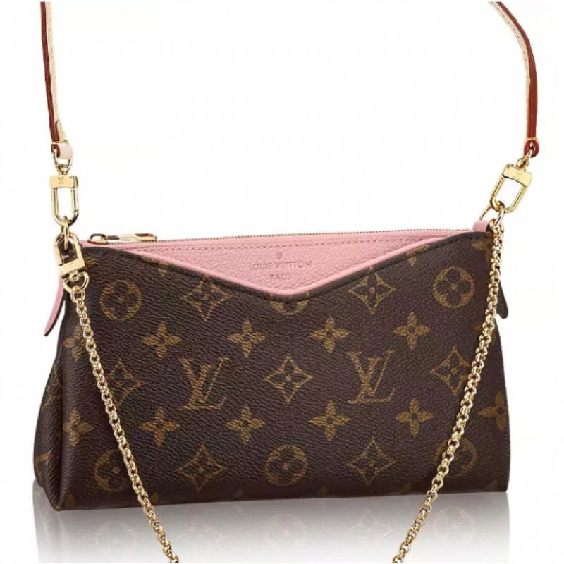 Louis Vuitton/路易威登 PALLAS CLUTH 老花 女士樱花粉色单肩手袋两用包 帆布/配皮 M44037