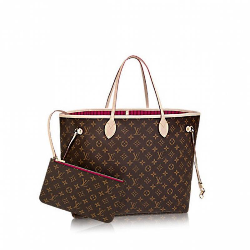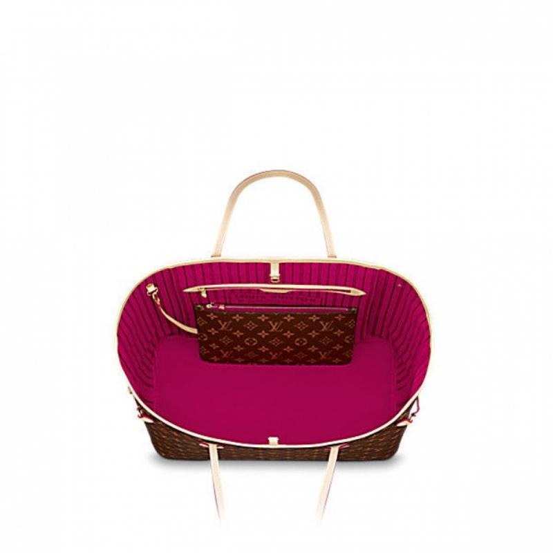 Louis Vuitton/路易威登 NEVERFULL大号内拼樱桃红色(附同款拉链手包)帆布/配皮 女士 单肩包M41180【99新未使用】