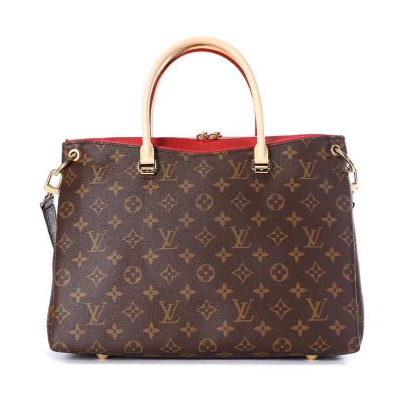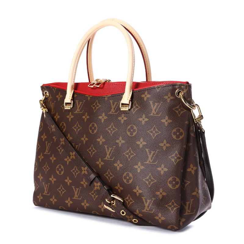 Louis Vuitton/路易威登 老花色配樱桃红女士大号手提两用包Pallas 帆布/配皮 M41175 (附LV专柜礼品袋)【99新未使用】
