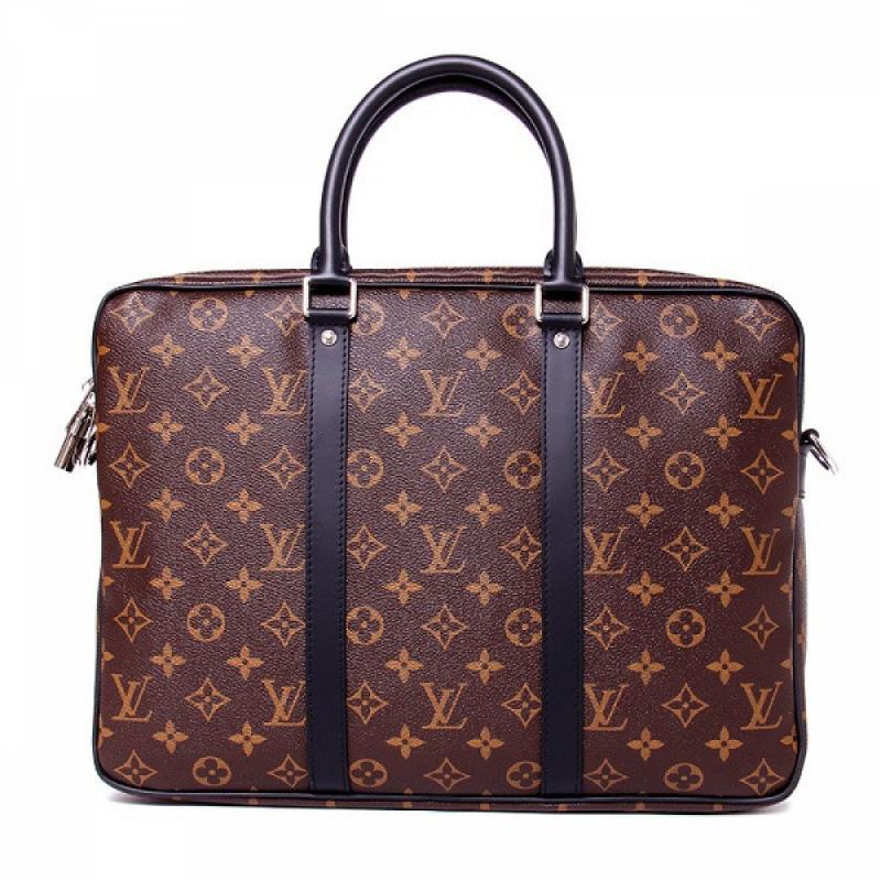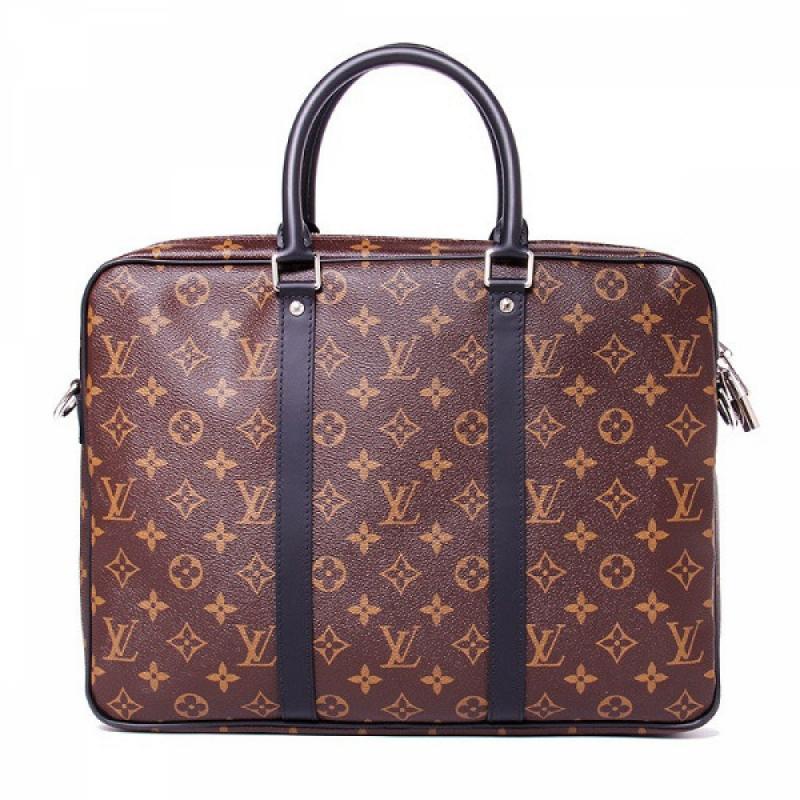 Louis Vuitton/路易威登 Porte-Documents Voyage 小号老花色/黑色帆布/配皮男士公文包 M52005【99新未使用】