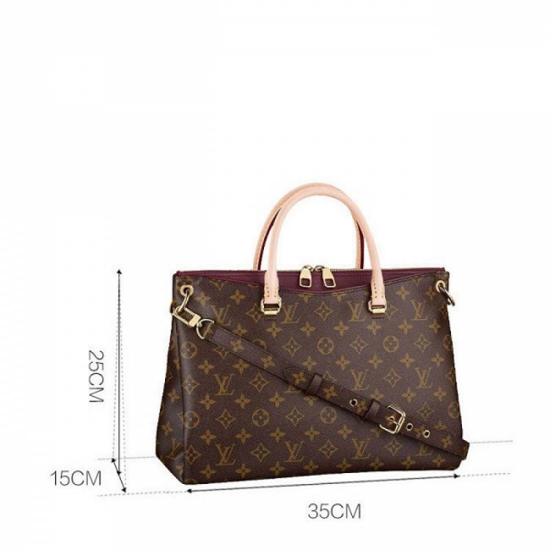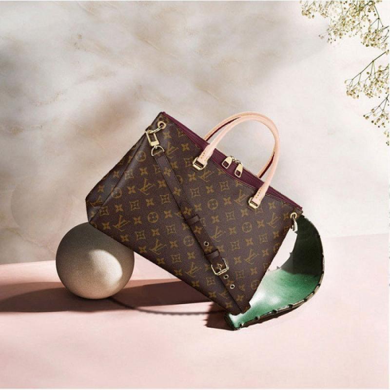Louis Vuitton/路易威登 老花色拼葡萄紫色女士大号手提两用包Pallas 帆布/配皮 (附LV专柜礼品袋)【99新未使用】