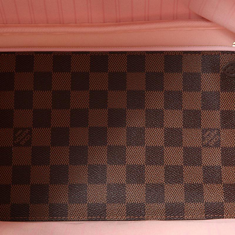 Louis Vuitton/路易威登 棕期盘内衬樱花粉色女士帆布单肩包中号Neverfull N41603(附LV品牌礼品袋)【99新未使用】
