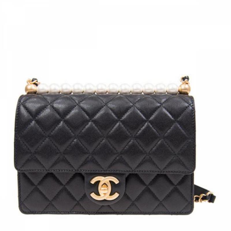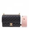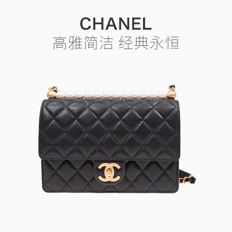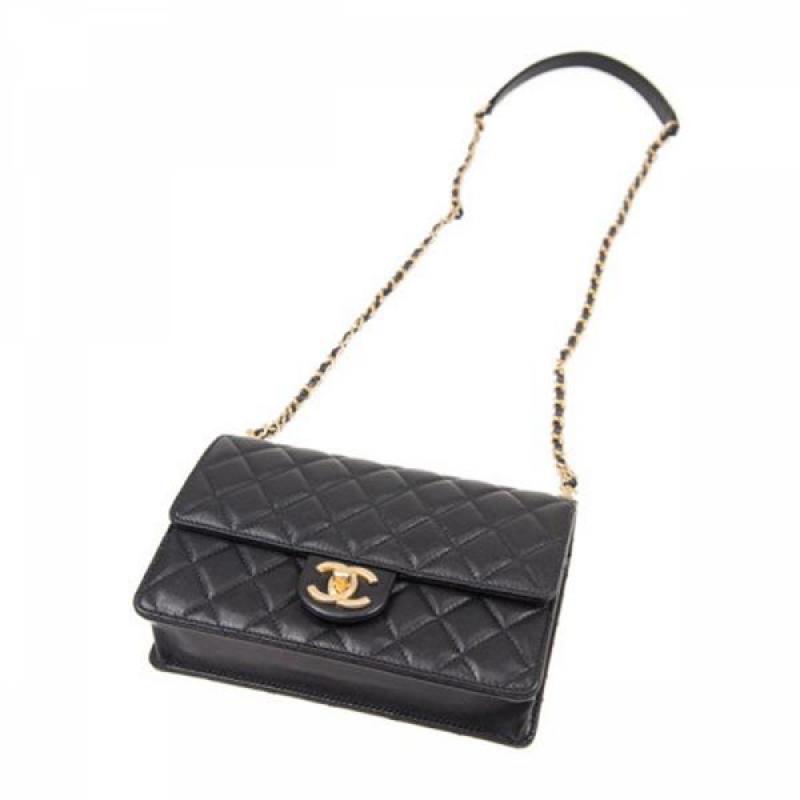 CHANEL/香奈儿 Classic Flap系列 女士黑色羊皮金扣logo标菱形格纹链条包单肩斜挎包(附品牌礼品袋)