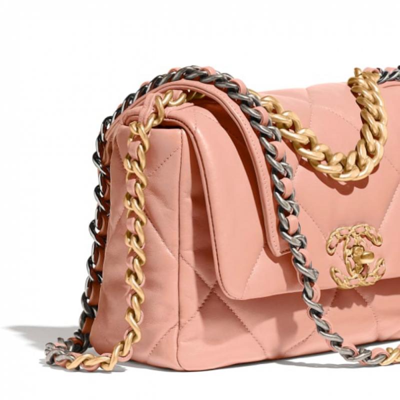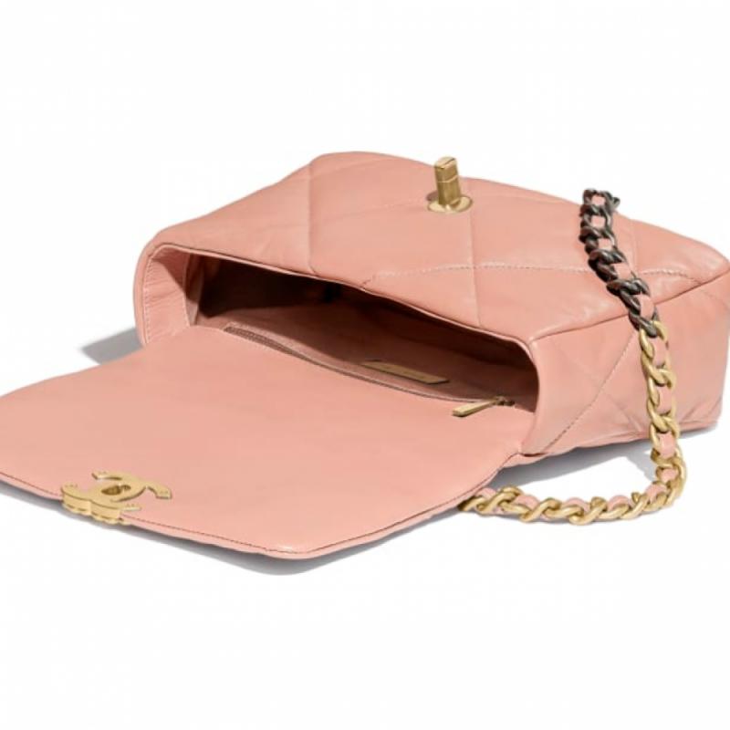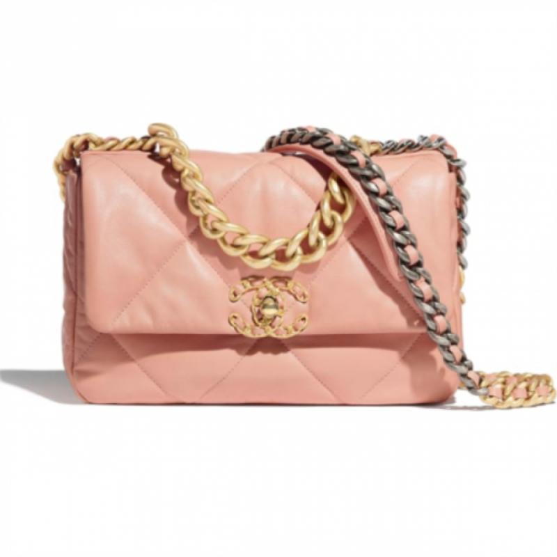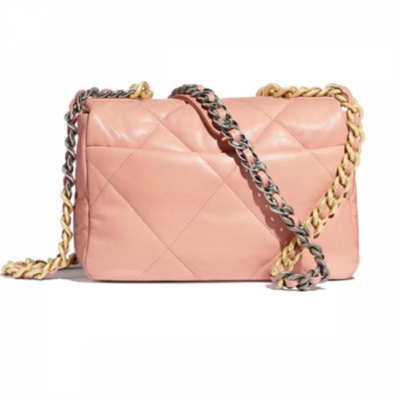 CHANEL/香奈儿 2020新款 19bag 26cm小号 羊皮 粉色 女士单肩包/斜挎包/手提包(附品牌礼品袋)【99新未使用