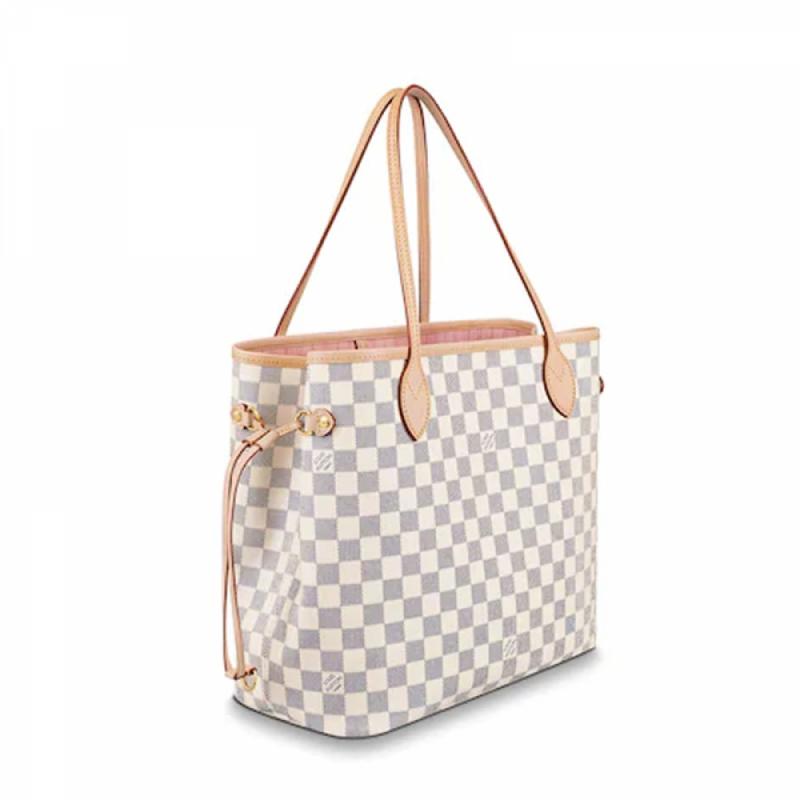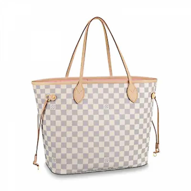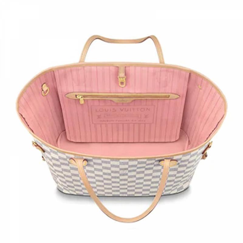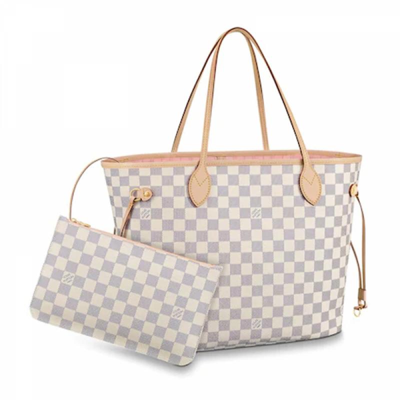 Louis Vuitton/路易威登 NEVERFULL 中号女士手袋 芭蕾粉/白色棋盘格 帆布/配皮 单肩包/女包 N41605