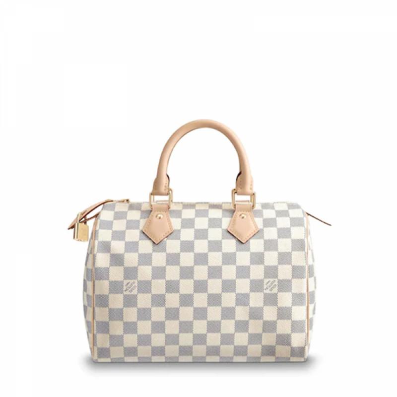 LouisVuitton/路易威登白色棋盘格 帆布/配皮 SPEEDY25女士手提包 N41371