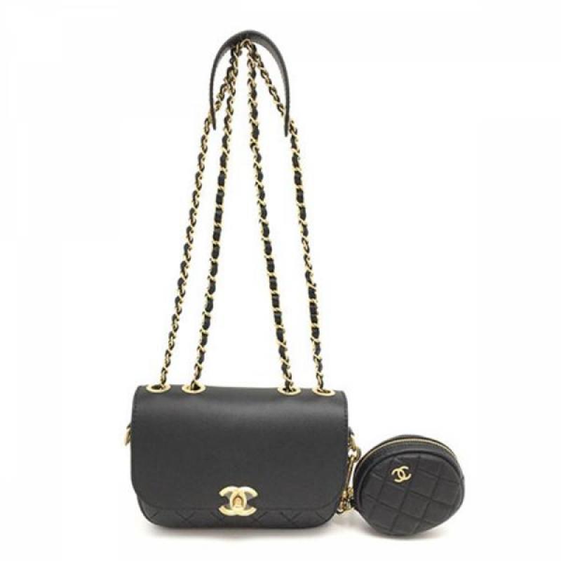 CHANEL/香奈儿 经典款黑色皮质女士链条单肩包/子母包 (附CHANEL品牌礼品袋)