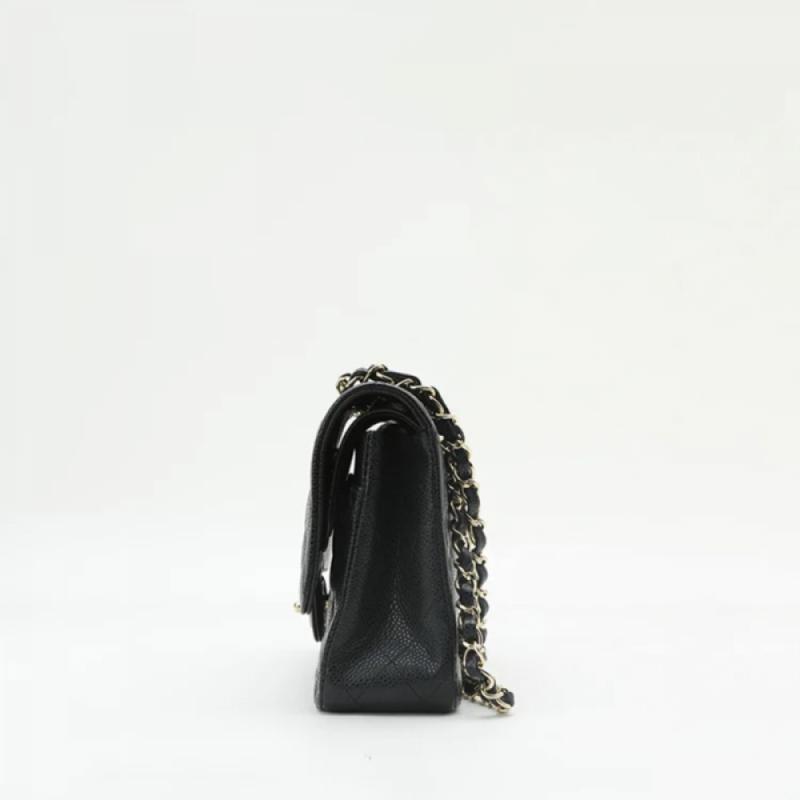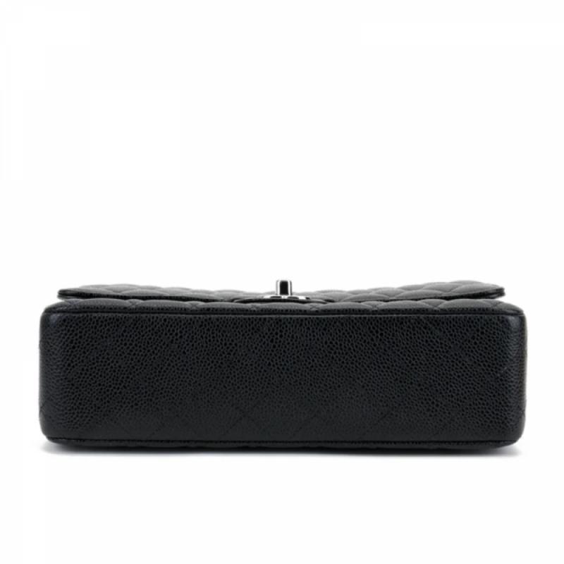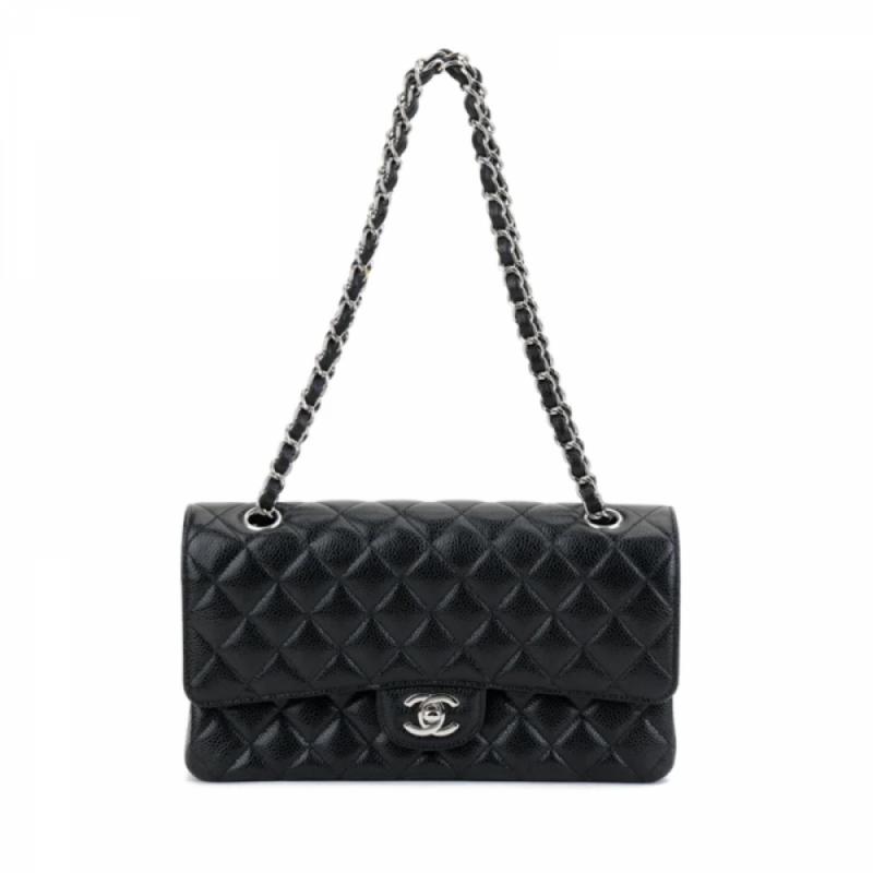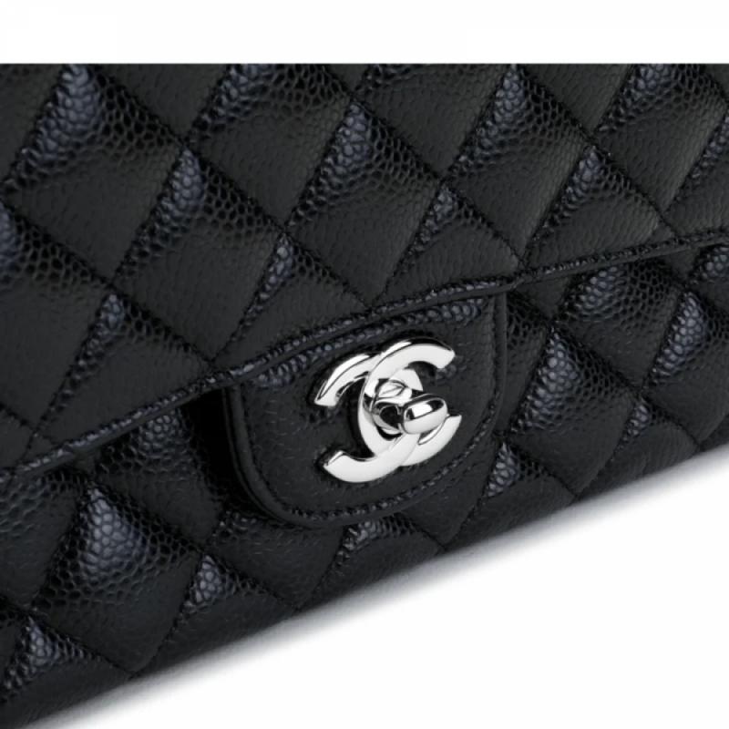 CHANEL/香奈儿 经典款CF 中号 黑银 荔枝纹皮质女士链条单肩包 (附CHANEL品牌礼品盒)