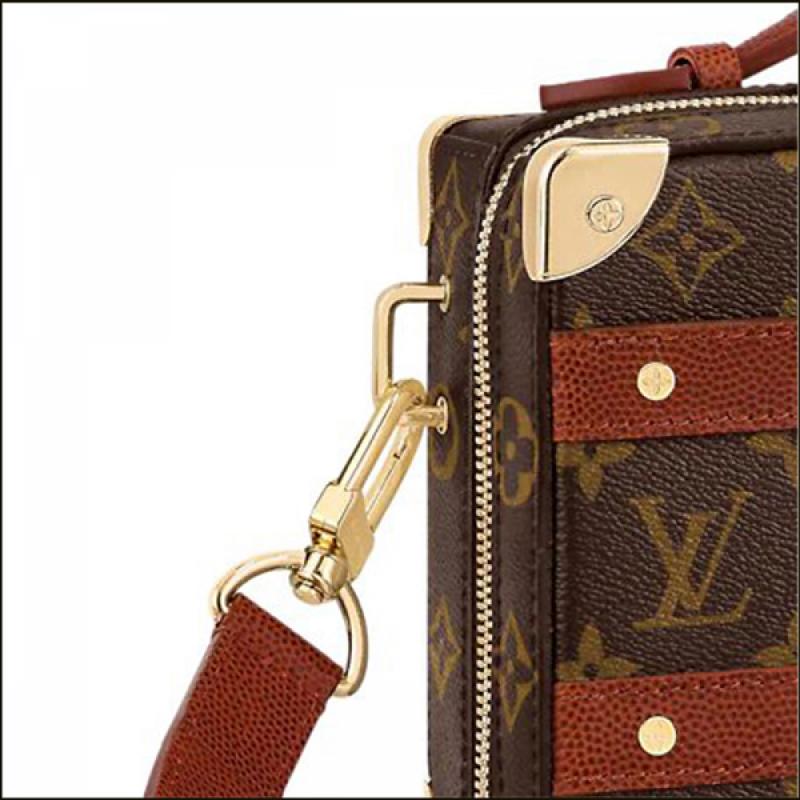 Handle Trunk 手袋汇聚方正构型、金属边角和铆钉,传承路易威登经典硬箱设计。顶部皮革手柄传递复古气息,可拆卸皮革肩带实现舒适肩背。双拉链头方便开启充裕内部空间,可容纳手机和钱夹。详细特征:21.5 x 15 x 7 厘米(长度 x 高 x 宽)