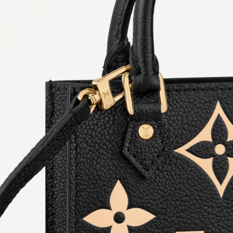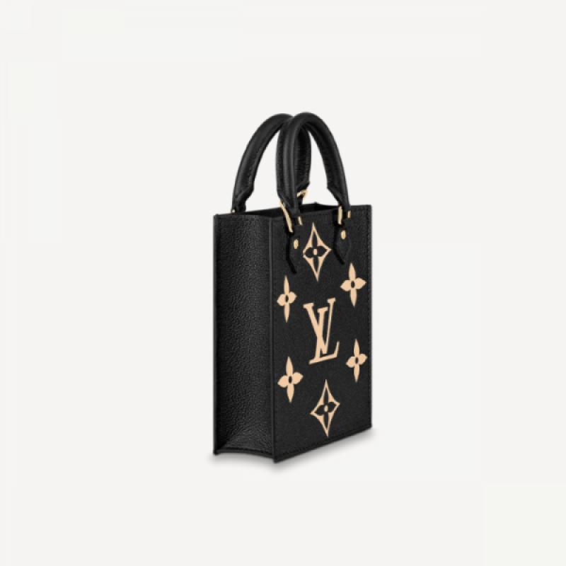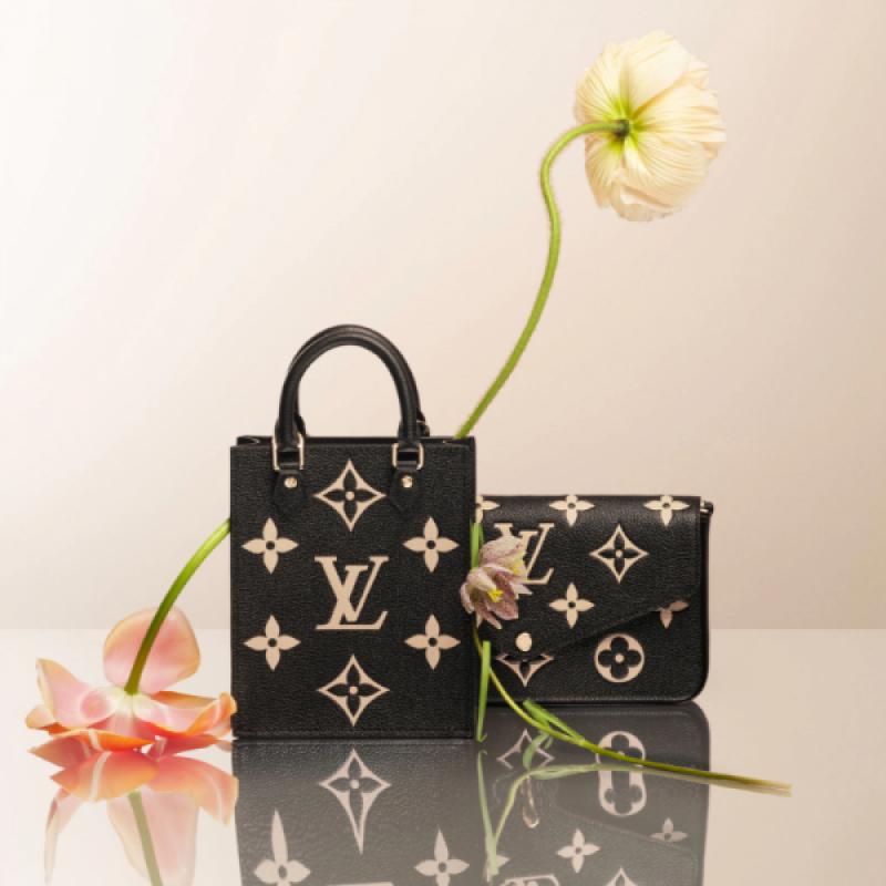 本款 Petit Sac Plat 手袋为 Monogram Empreinte 软粒面皮革的 Monogram 压纹渲染别致双色,呈现路易威登经典 Sac Plat 手袋的袖珍版本。轻盈构型兼具充裕空间,肩背、斜挎或手提皆宜。