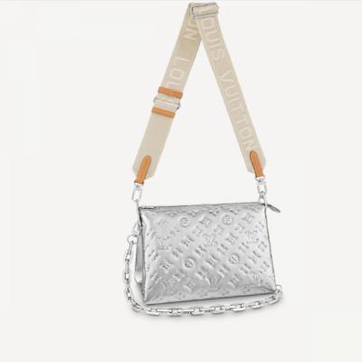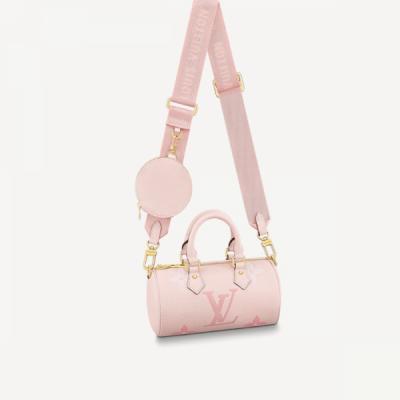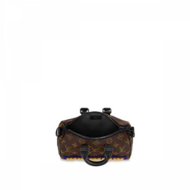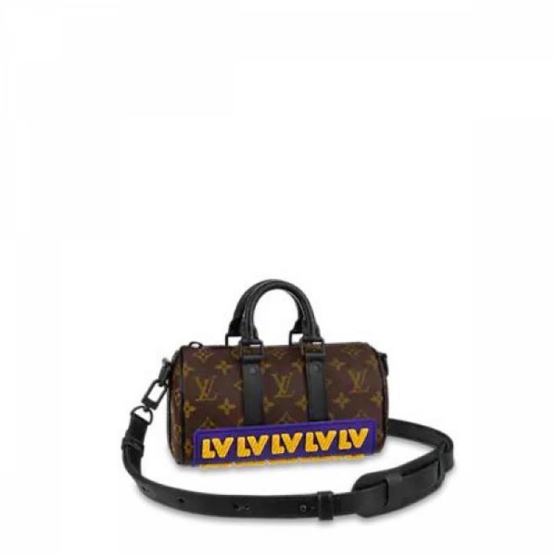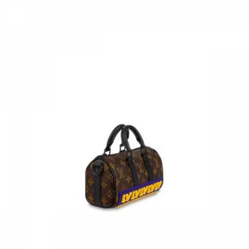 本款 Keepall XS 手袋令乳胶 LV 字母镶饰排列于 Monogram 帆布下端,迸发明亮色彩的同时提供稳妥保护,妙趣阐释 2021 秋季系列 LV Rubber 主题。双手柄和可调节肩带实现舒适背携