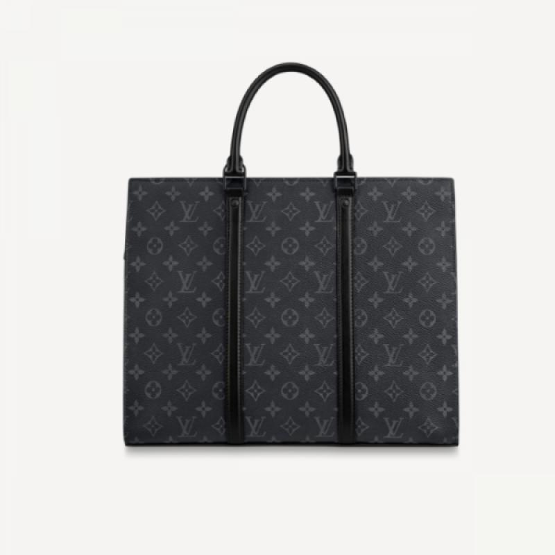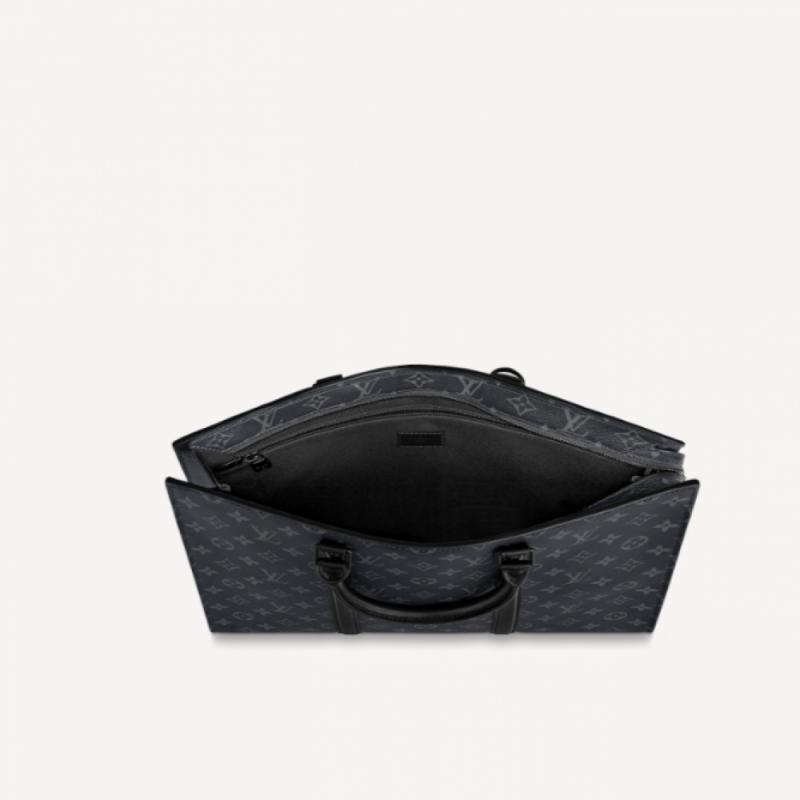 Sac Plat Horizontal Zippé 公文包取材 Monogram Eclipse 帆布和皮革,LV 字母压纹与 Monogram 致意品牌传承,利落线条抒写商务休闲新章,更有皮革手柄实现舒适手提。