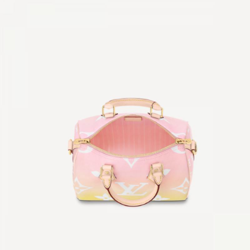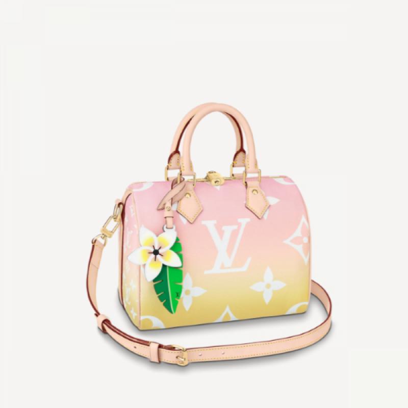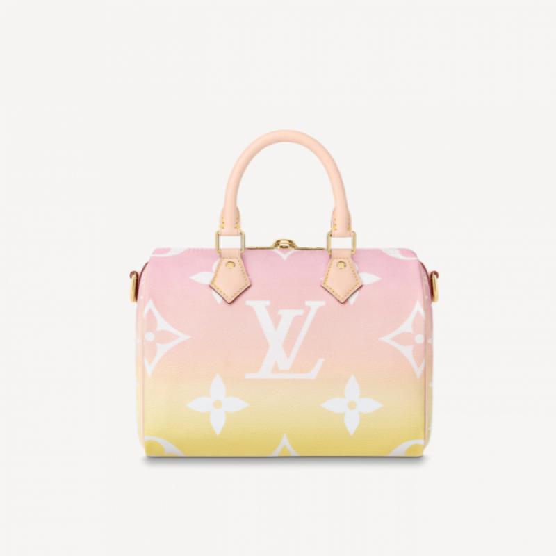 本款 Speedy 25 手袋为 Monogram Giant 帆布涂抹渐变粉彩色调,点缀皮革花卉,以优雅轮廓契合都市生活。Speedy 手袋系列以“Express”之名问世于 1930 年,致意当时日益迅捷的交通方式。