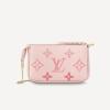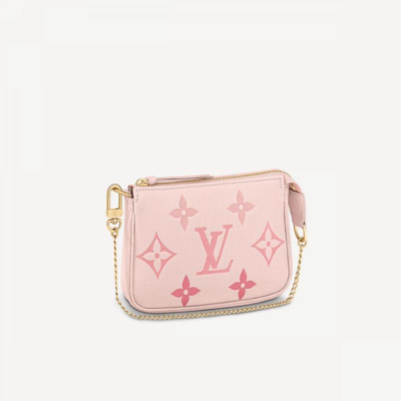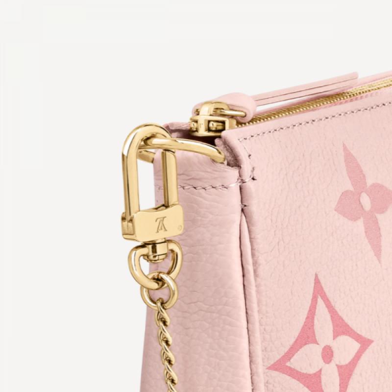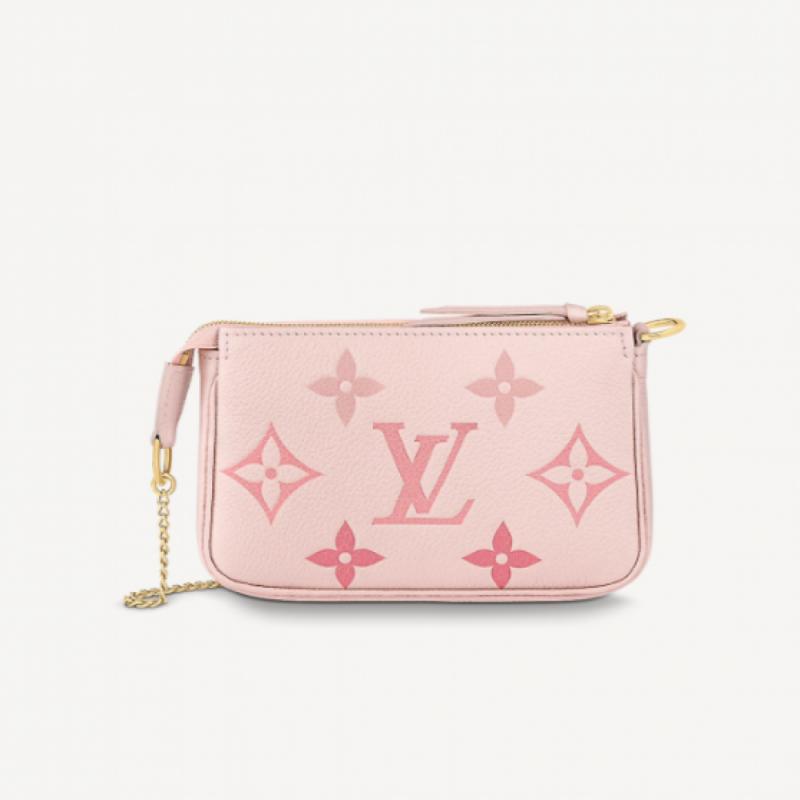 Mini Pochette Accessoires 手拿包于 2021 夏季 By The Pool 胶囊系列取材 Monogram Empreinte 皮革,以渐变色调描绘 Monogram 压纹,可通过链条悬挂于手袋或腰带。该系列同时推出皮具、配饰及成衣。