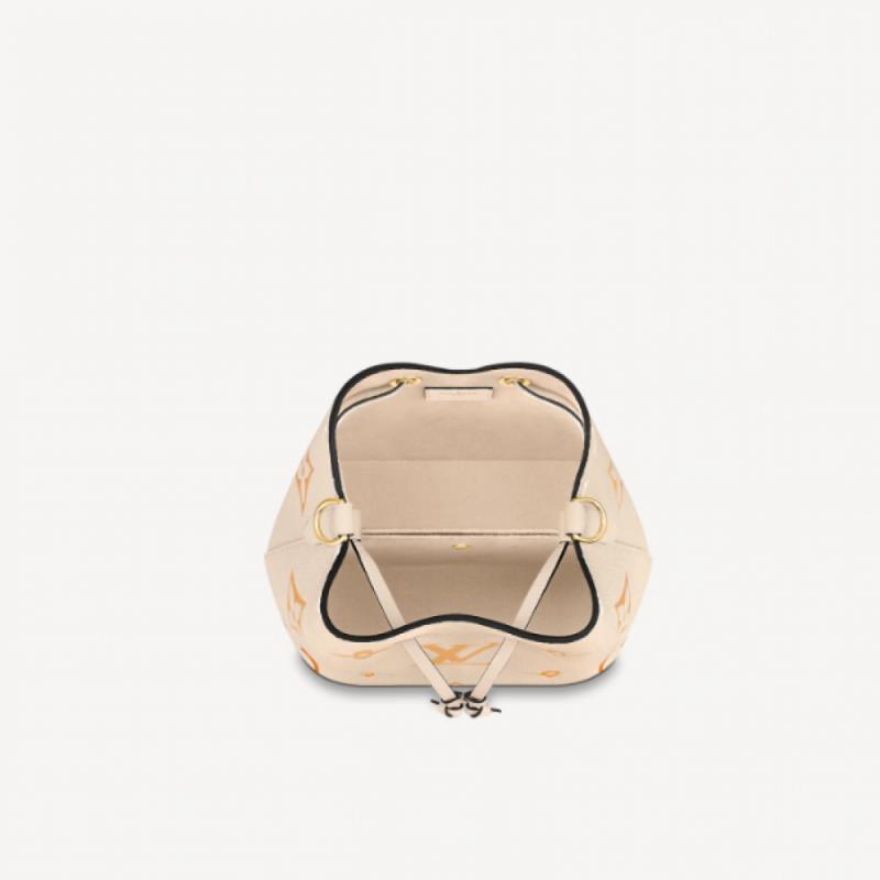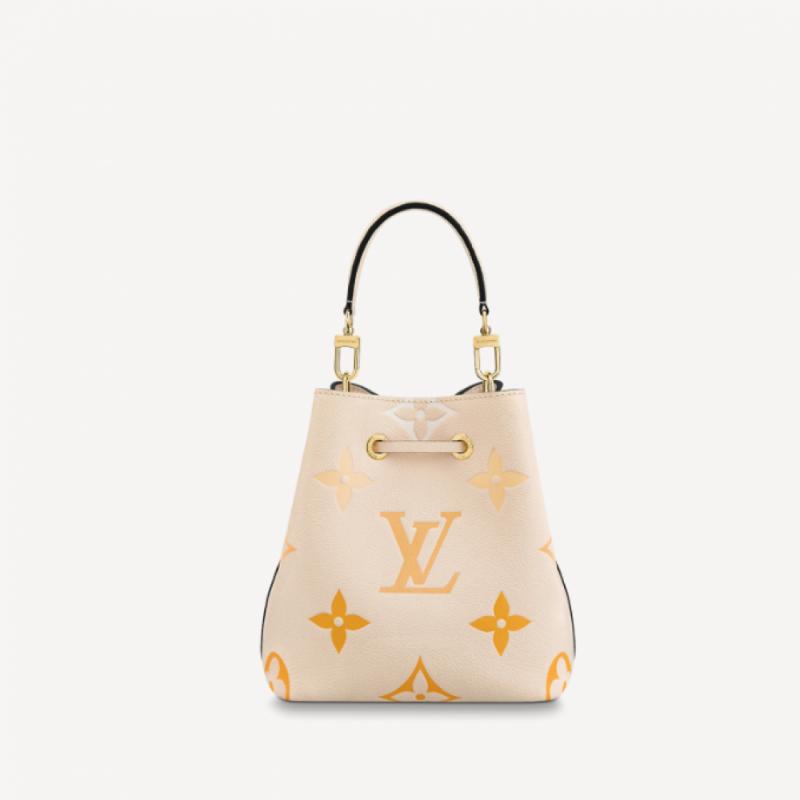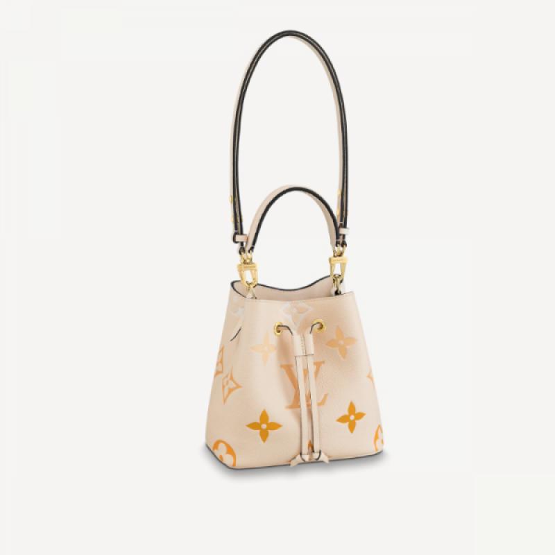 本款 NéoNoé BB 水桶包为 Monogram Empreinte 皮革渲染 Monogram Giant 图案的粉彩渐变,烘托节日欢欣。可拆卸顶部手柄便于手持或肘挎,可调节肩带实现手拎和肩背选择。