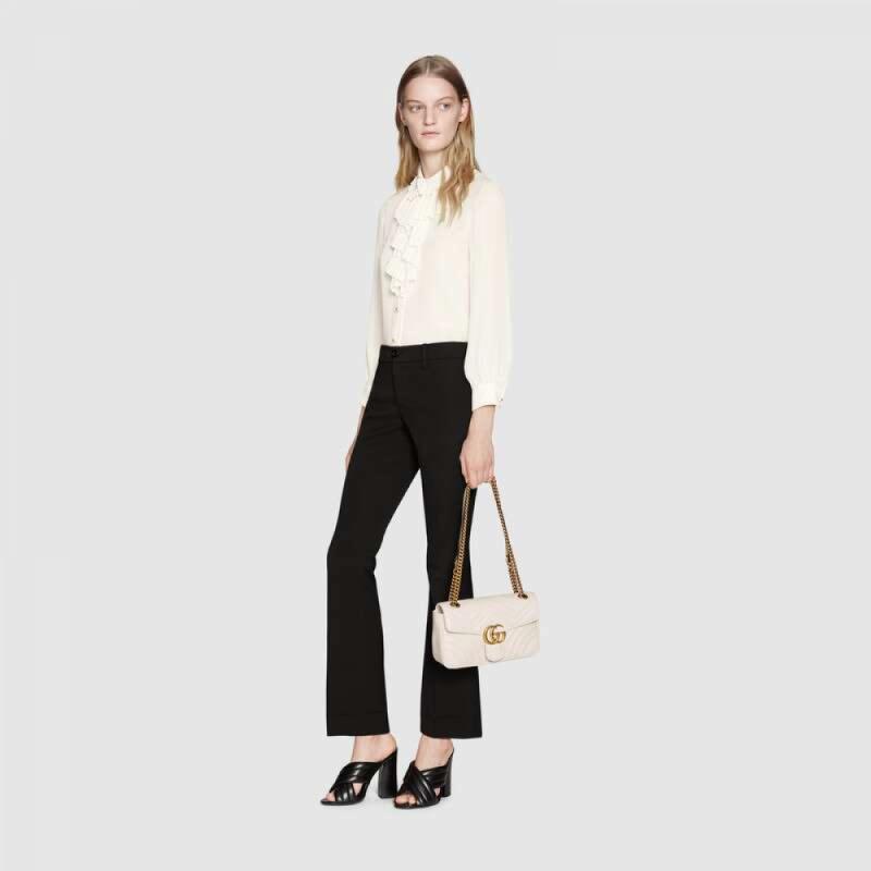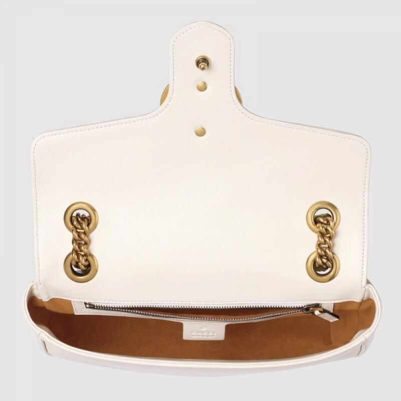 GUCCI/古驰 女包 古琦 爆款双G logo 波纹中号女士皮质手拿单肩斜挎包 白色【99新未使用】