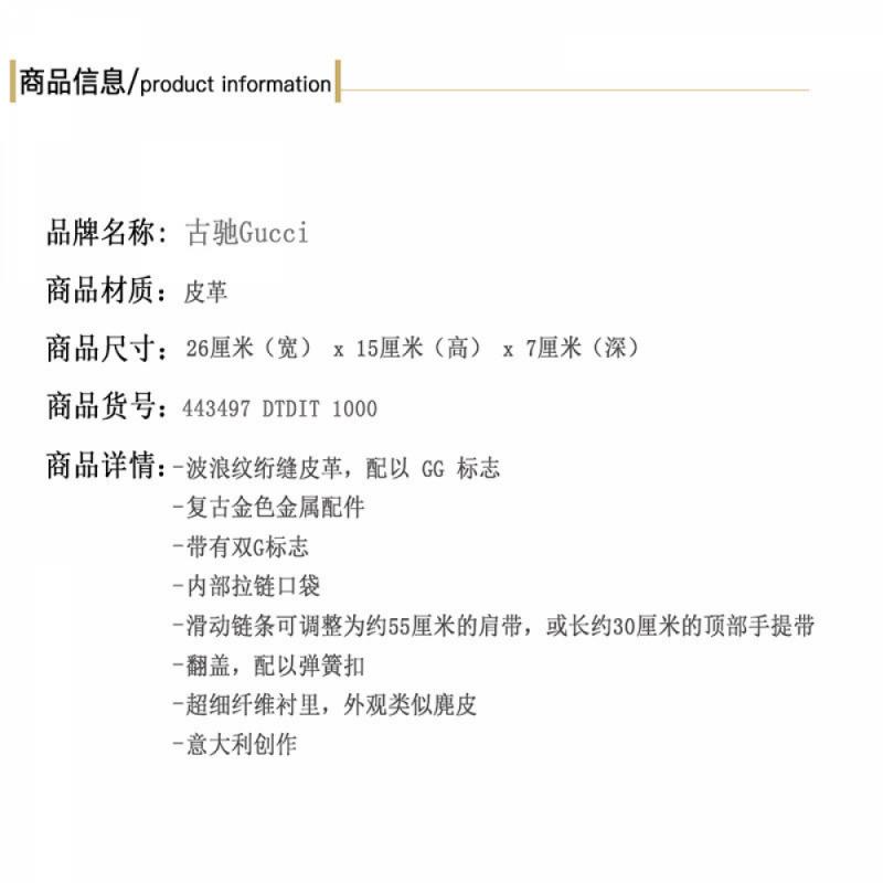 GUCCI/古驰 GG Marmont系列绗缝女士皮质肩背包443497 DTDIT 1000【99新未使用】